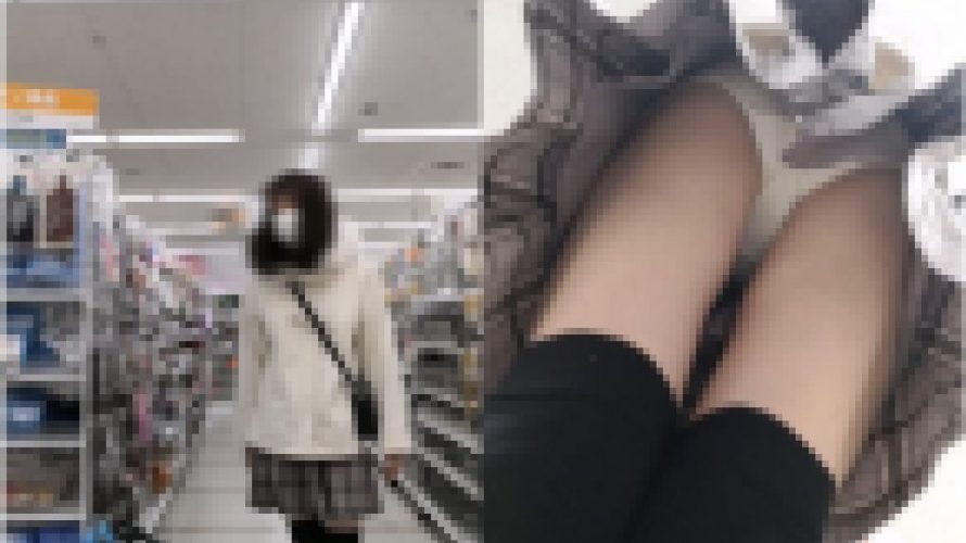 目の前をミニスカートのJKが通りかかったため、慌てて追跡を開始。 まずは全身像を収め、場所を移動するためJKの前を歩いて前から撮影。 わざとゆっくりと歩き並走します。 JKに先に行ってもらい、すぐさま真後ろへ回り込み下から激写。(スローあり) 淡い水色?緑?のPがよく見えます。 しゃがみこんで商品を見てたため、わずかな時間ですがしゃがんだ正面もゲット。 設置した亀にもチラチラと映ります。 Pが食い […]